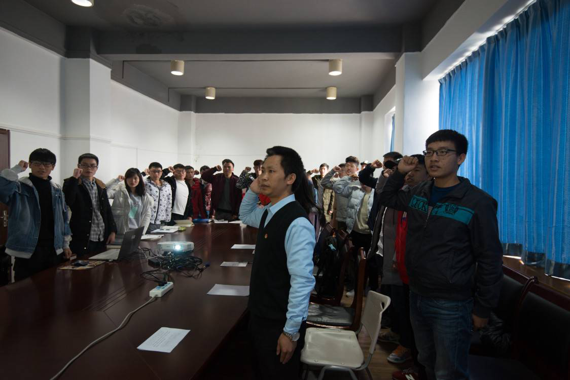 活动最后由刘松老师作总结发言并带领40余名团员面对团旗重温入团誓词,庄严宣誓。火红的团旗下,回响着青年团员们要为共产主义事业奋斗的铿锵誓言,闪亮的团徽里,映衬着新团员要为实现“中国梦”发奋自强的坚毅表情。同时也寄语同学们在今后的工作中要敢于改革创新、实干担当、攻坚克难、致富创美的“贵州脱贫攻坚群英谱”,大力培育和弘扬“团结奋进、拼搏创新、苦干实干、后发赶超”的新时代贵州精神,把学习先进的激情转化为奋发作为的精神状态,面对机遇有闯劲、面对任务有干劲、面对差距有拼劲,把思想统一起来、把力量凝聚起来、把责任担当起来,续写新时代贵州发展新篇章,奋力开创百姓富、生态美的多彩贵州新未来。