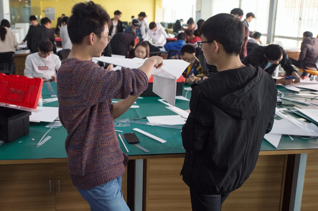 比赛一开始,每支参赛队伍按照事先设计好的图纸,开始有条不紊地制作航模。每支参赛队伍在制作的过程中分工明确,队员们团结协作。对于制作航模时出现的突发事件进行及时解决。整场比赛在紧张的气氛中有序进行。