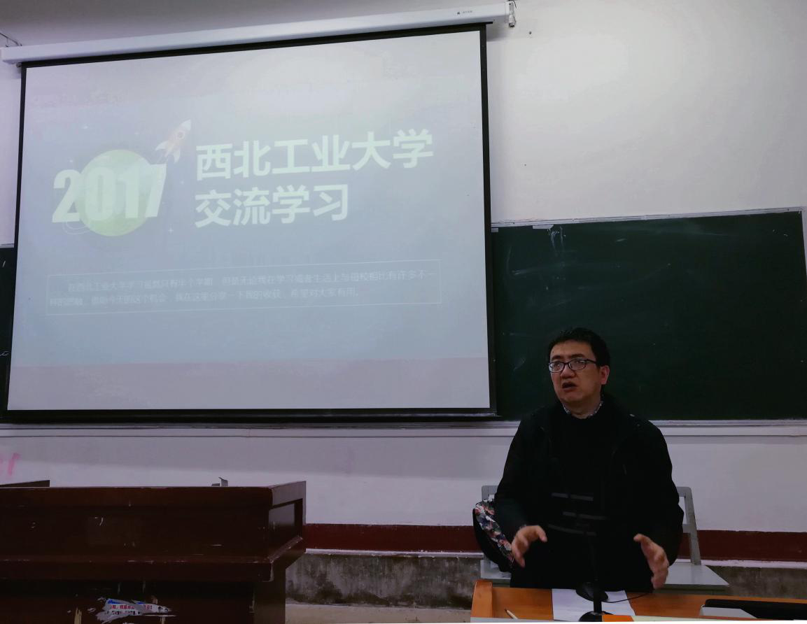 史泽奇作为去西工大交流的学生之一,首先进行发言。史泽奇从一开始准备去西工大交流之前的满心憧憬谈起,讲到了自己在西工大的学习和生活。通过在西工大半年的交流学习,史泽奇认为自己最大的收获就是在西工大养成了一个好习惯并将这个习惯坚持下来。