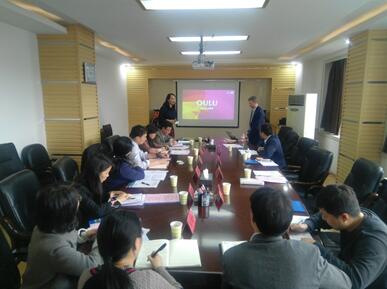 会上,孙凯对Jussi一行的到来表示热烈欢迎。在观看贵州理工学院宣传片之后,Jussi重点介绍芬兰奥卢应用科技大学初创和创业指导培训模式(LAB),顾亚丽详细介绍我校大学生创新创业教育工作开展情况,杨秀伦表达了贵安、奥卢、贵州理工学院在创新创业人才培养、企业孵化等方面的愿望。最后,三方在学生创新创业模式、双学位授予、教师互派等方面展开热烈讨论和交流,并形成备忘录。