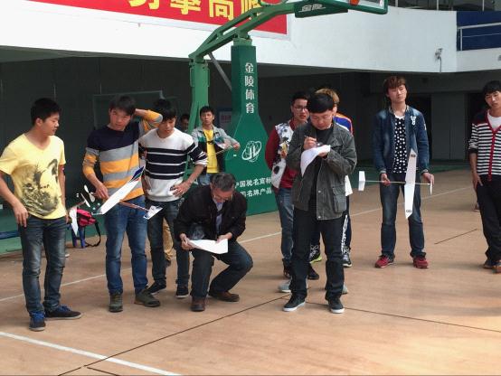 本次比赛,共有32组近百名学生参加。比赛分三个阶段:一、在工程实训中心,每组选手进行飞机模型的组装和调试;二、在田径场,观看电动固定翼飞机飞行表演;三、在室内体育馆进行橡皮筋动力飞机模型的飞行比赛。