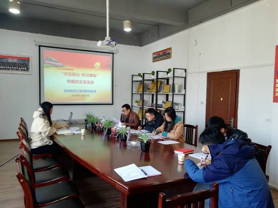 (本网讯 于茂竹/图、文)12月10日下午,航院党总支在学院会议室召开党总支领导班子“不忘初心、牢记使命”专题民主生活会。学院党总支全体领导班子成员参加本次会议。学院党总支组织员罗波、党支部组织委员徐峰悦、党支部宣传委员于茂竹列席会议。校第四巡回组指导组成员谢述琼出席本次会议并进行现场指导。学院党总支书记李青主持会议。