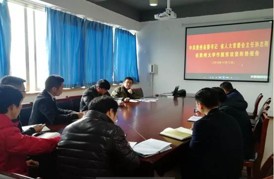 2019年3月11日,航空航天工程学院教工党支部组织观看省委书记孙志刚在贵州大学作脱贫攻坚形势报告视频,学习贯彻贵州脱贫攻坚的精神。支部18名党员在学院1318会议室参加本次大会。