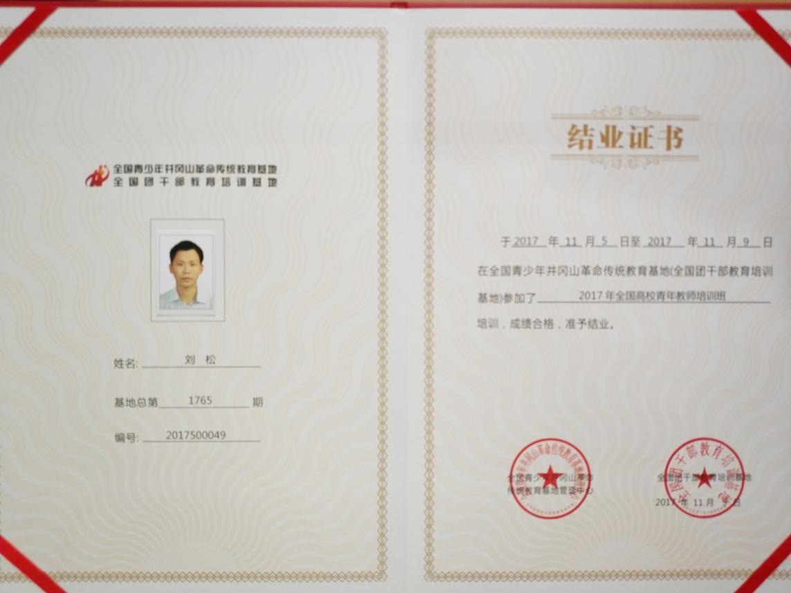 本次培训班为“2017年全国高校青年教师培训班”第1765期,共有来自全国149所高校的150位青年教师参加。11月5日晚的“三湾改编”情景教学——党的领导是革命事业成功的根本保证,到6日的“党的十九大精神解读”,“近期国家教育领域有关精神解读”以及“工作论坛:十九大精神学习交流”等专题的培训学习,刘松老师深刻认识到:作为一名团务工作者要紧紧围绕立德树人这一根本任务,以高度的政治高度,做习近平新时代中国特色社会主义思想的传播者,做青年学生成长奋斗的知心人、引路人,做有理想信念、有道德情操、有扎实学识、有仁爱之心的好老师。