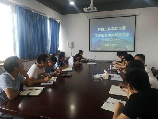 (本网讯图、文/江维林)根据学校评估中心安排,为进一步加快推进评建工作,落实评建工作要求,9月6日,航空航天工程学院召开评建工作再动员暨工作任务落实整改会议,院长黄芳主持会议。首先,黄芳传达学校评建工作要求及有关精神,并结合学院实际对近期评建工作进行针对性的安排部署,责任到人,任务到事,效果见行。随后,对上学期各班学习成绩报告和英语四六级通过率进行对比分析,从全校、学院、各班的情况进行横向、纵向比较,指出学生学习状况不尽人意,与会人员充分进行分析讨论,并提出一些操作性较强的整改意见和建议。之后,对各班提交的《班级成绩分析报告》进行逐一展示,对其中提到的对学院和任课老师的意见和建议进行反馈,对同学们的心声有了进一步了解。最后,学院要求各班有针对性的开展学生思想政治教育、寝室文化建设等促进良好学风形成的扎实有效的班级工作,学院也将在英语、计算机、大学生职业生涯规划、专业学业指导和教育等方面采取切实有效的办法,引导、指导学生成长成才,达到本科教学合格评估对人才培养质量的要求。