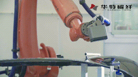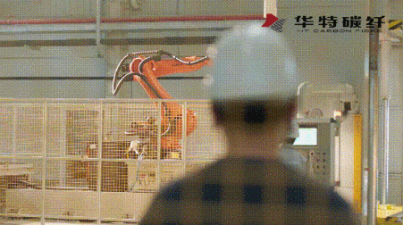 通过自动化搬运机器人,将预成型料送至模压机上进行模压成型(PCM),华特目前能做到5-10分钟成型,拥有800-1000吨压机,可成型各类大型工件。