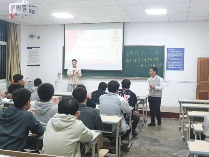 (图/冉时亿 文/郭俨蝗)为使同学们深刻领悟二十大精神,2023年4月11日,飞行222班团支书在第二教学楼108教室主持召开团课学习活动,本次团课学习主题是“青春践行二十大,朋辈引领树楷模”。航空航天工程学院团总支书记刘松老师和飞行222班全体同学一同参与了此次团课。