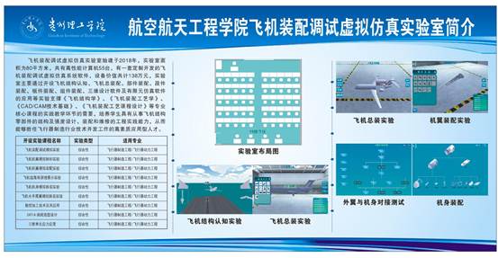 飞机装配调试虚拟仿真实验室于2018年建设,实验室面积为80平方米,共有高性能计算机55台,有一套定制开发的飞机装配调试虚拟仿真系统软件,设备价值共计135.9802万元,能够容纳54名学生同时开展实验。实验室主要通过开设飞机结构认知、飞机总装配、部件装配、段件装配、板件装配、组件装配、三维设计软件及有限元仿真软件的应用等实验支撑《飞机结构学》、《飞机装配工艺学》、《CAD/CAM技术基础》、《飞机装配工艺课程设计》等专业核心课程的实践教学环节的需要,培养学生具有从事飞机结构零部件的结构及强度设计、装配和维修的工程实践能力,从而能够胜任飞行器制造行业技术开发工作的高素质应用型人才。