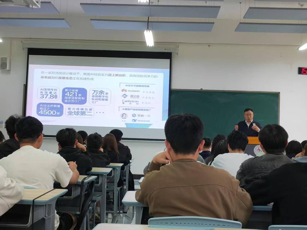 5月28日,副院长李少波以“正确认识人工智能新浪潮”为题,为材料246、247班学生讲授“形势与政策”课。他从认清发展态势、应用走深走实和筑牢发展优势三个方面介绍人工智能新浪潮。他指出加快发展新一代AI已成为赢得全球科技竞争主动权的重要战略抓手。叮嘱同学们正确认识DeepSeek,其使用只能作为一种学习的参考,不能作为复制和抄袭的工具。