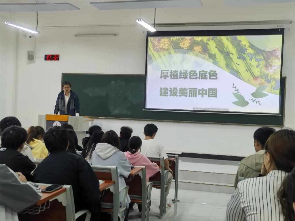 5月27日,副院长安艳玲以“厚植绿色底色,建设美丽中国”为题,为统计241、242、物理241班学生授课。她指出我国推进绿色转型,既是应对全球环境危机的必然之举,也是实现可持续发展、增强国际竞争力的关键所在。她以安吉村为例,诠释了绿色发展理念对于中国实现可持续发展的核心价值与重大意义,生动展现了习近平生态文明思想的成功实践,激发大家投身美丽中国建设的责任感与使命感。