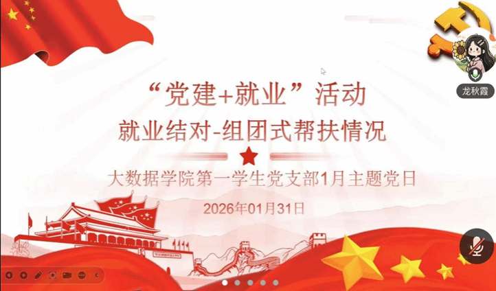 本网讯(大数据学院 文/袁梓熙 图/杨丹妮)2026年1月31日,大数据学院第一学生党支部在线开展“深入学习贯彻党的二十届四中全会精神 以实干实绩开新局”主题党日。支部组织委员陈盼主持,支部党员参加。