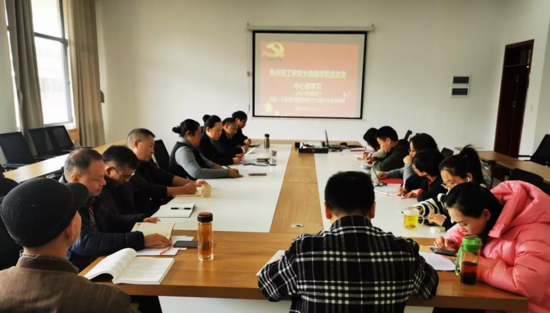 本网讯(大数据学院 图/秦媛媛 文/秦媛媛)2021年11月18日下午,大数据学院党总支中心组在贵安校区知行楼3522会议室开展主题为“认真学习贯彻党的十九届六中全会精神”专题学习,党总支委员、各科室(教研室)负责人、信息实验中心负责人及师生党支部书记、支部委员参会,党总支书记张艳主持会议。