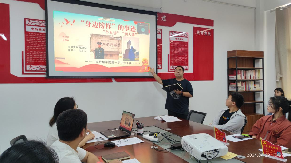 本网讯(大数据学院 文/徐丽菊 图/方禹)4月29日,大数据学院第一学生党支部在党员活动室开展“党纪学习教育”主题党日活动。支部书记石春梅主持,支部全体党员参加。
