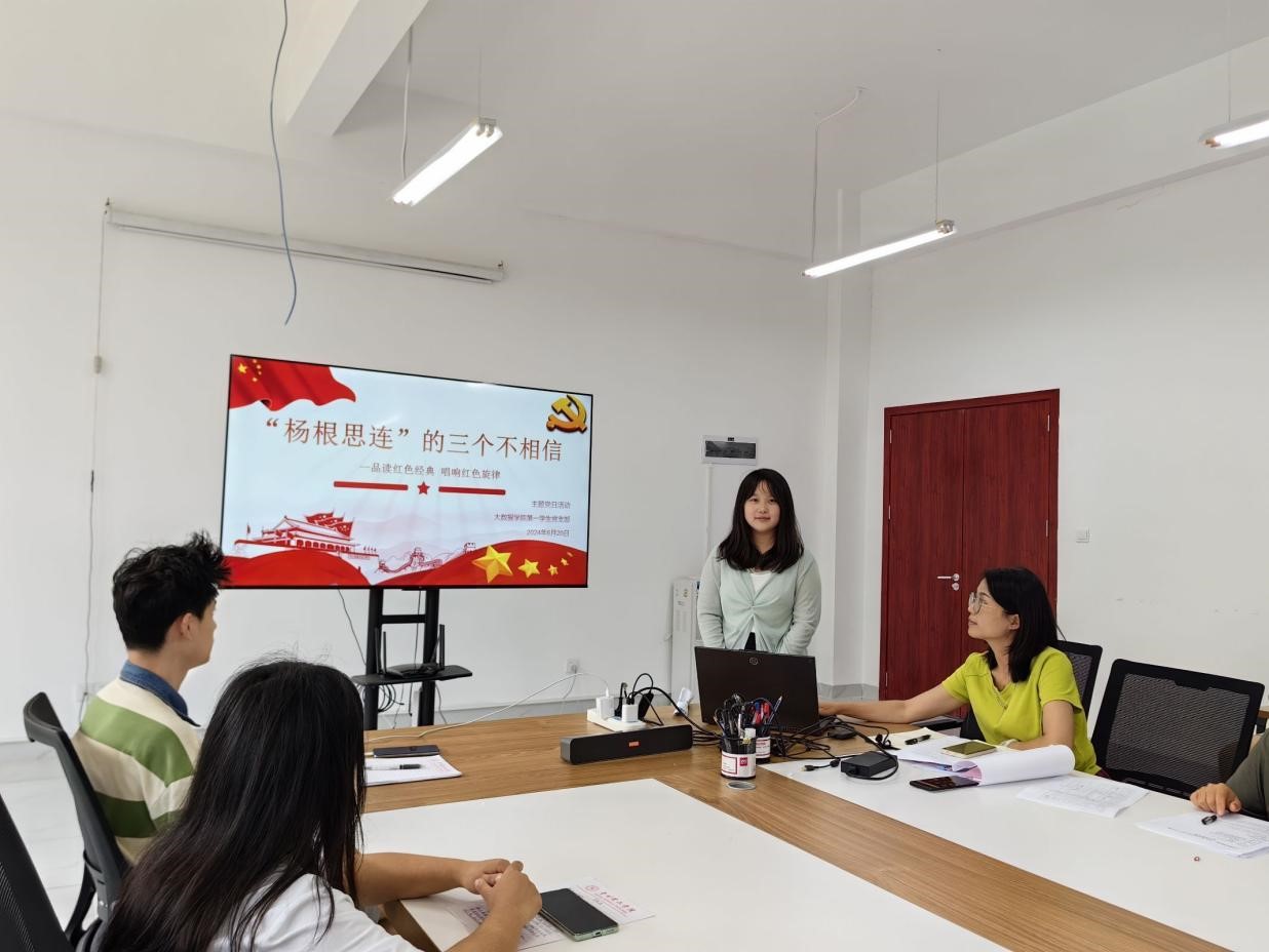 支部以案促学,组织党员观看警示教育片《决不姑息》第一、二集,开展“品读红色经典 唱响红色旋律”之红色故事微党课。武丹彤、方禹同志分别以《“杨根思连”的三个不相信》《一等功臣—陈祥榕》为主题展开,激励党员同志传承红色基因,弘扬革命精神,以攻坚克难的勇气、敢闯敢试的锐气、持之以恒的志气谱写青春篇章。郭光彬、周春同志讲述大数据学院2023届毕业生党员的先进事迹,激励大家向榜样看齐,争做时代先锋,充分发挥模范带头作用。
