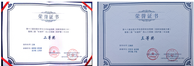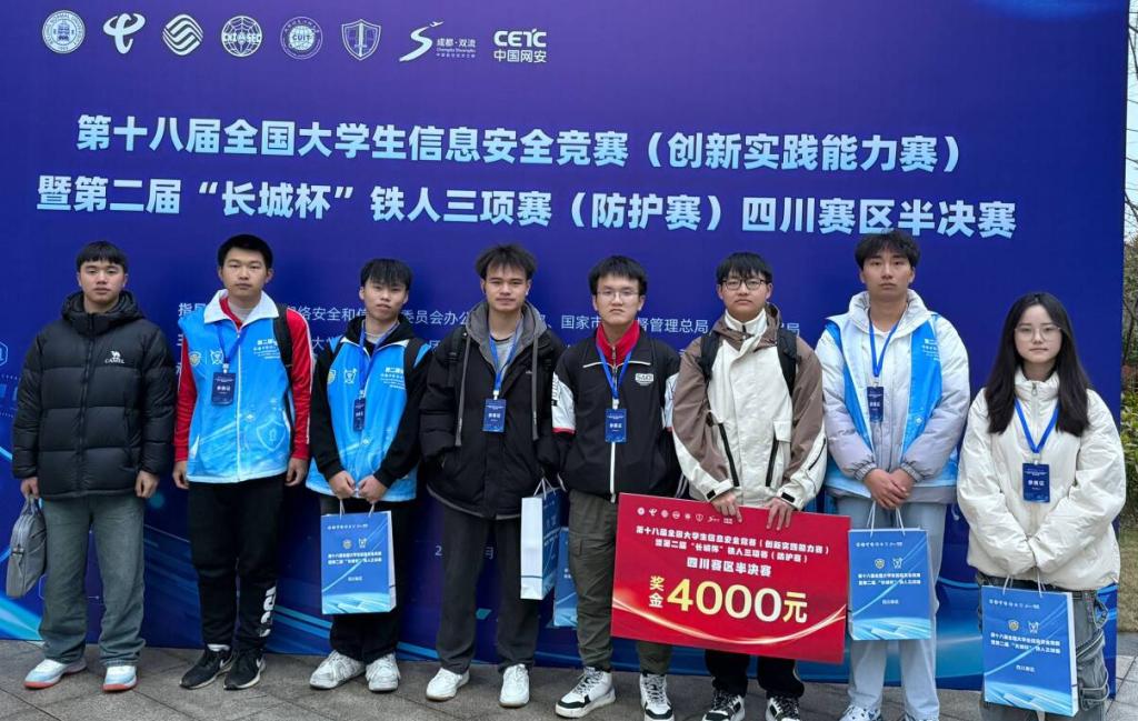 此次参赛队伍是从四川赛区初赛中晋级的100支队伍,共计380名网安高手同台竞技。我校大数据学院有两支队伍成功晋级半决赛。经过异常激烈的角逐,最终由王俐老师指导的,杨秀榉、胡佳豪、吴兴旺、王凤欣四位同学组成的“HexByte”团队荣获二等奖;由王寅庆老师指导,付志力、金玉桂、罗引瑞、卢来四位同学组成的“团团又队队”团队摘得三等奖。