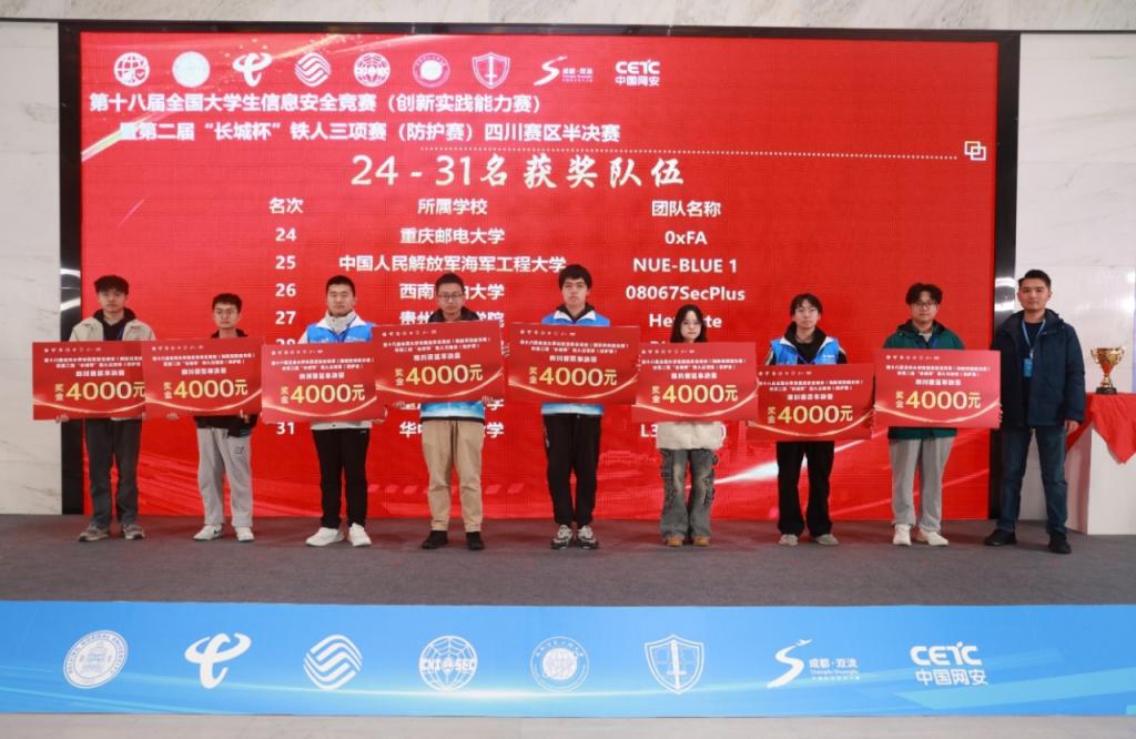 本网讯(大数据学院 文/图 罗引瑞)2025年3月16日,第十八届全国大学生信息安全竞赛(创新实践能力赛)暨第二届“长城杯”铁人三项赛(防护赛)四川赛区半决赛在成都信息工程大学双流新型产业学院盛大举行。我校大数据学院两支参赛队伍喜获二、三等奖。