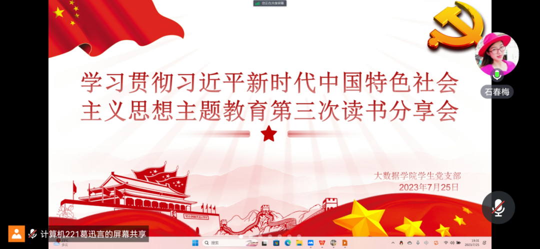 本网讯(文/赵晴 徐丽菊)近日,大数据学院第一学生党支部通过腾讯会议开展主题教育第三次读书分享会和7月主题党日活动,支部书记石春梅主持,支部全体党员参加。
