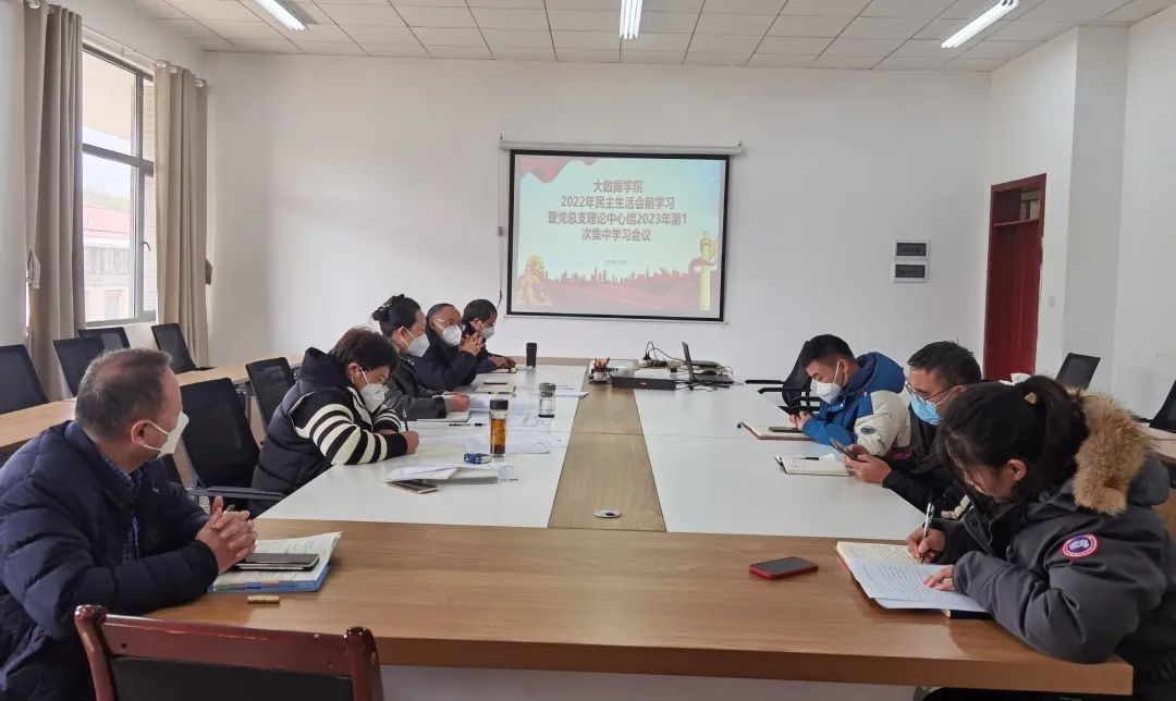 本网讯( 图/文 石春梅)2023年1月6日,大数据学院党总支2022年度民主生活会前专题学习暨党总支理论学习中心组2023年第1次集中学习在贵安校区G3522会议室举行,主题为“深入学习宣传贯彻党的二十大精神 高质量开好2022年度民主生活会”。党总支书记张艳主持,党总支委员、师生党支部书记、各科室负责人参加。