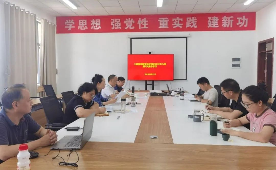 本网讯(文/图 石春梅)6月27日,大数据学院党总支理论学习中心组在贵安校区G3522会议室开展主题教育集中学习,围绕“在以学增智中增强政治能力、思维能力、实践能力”主题进行交流研讨。党总支书记张艳主持,党总支委员、领导班子成员、科室负责人、师生党支部书记参加。