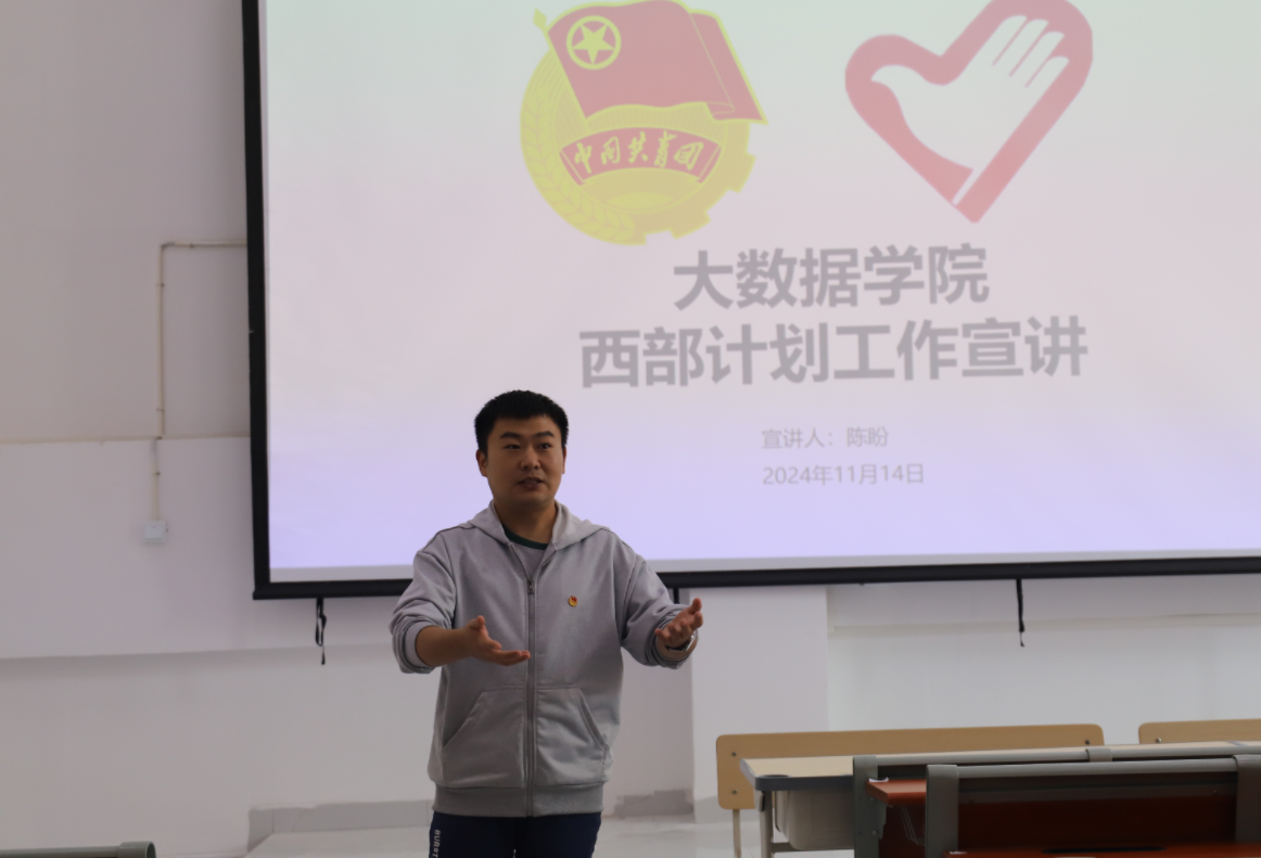 本网讯(大数据学院 文/余圣城 图/毛茜)为鼓励广大学子投身西部建设,11月14日,大数据学院团总支副书记陈盼在睿知楼324教室面向我院2021、2022级同学开展西部计划工作宣讲。