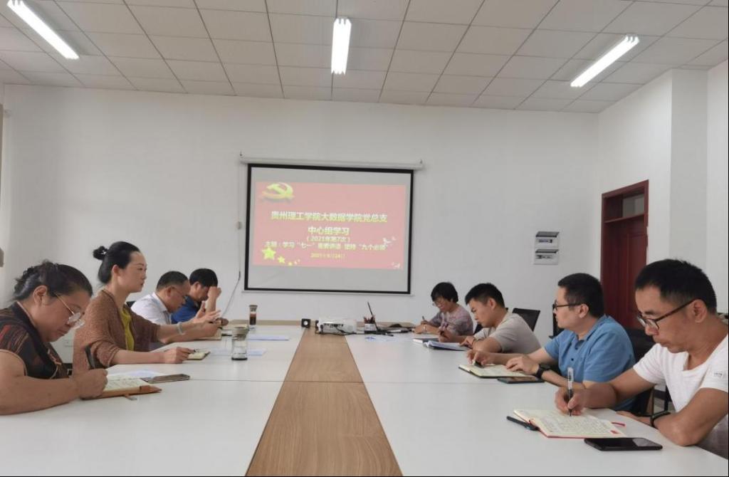 本网讯(大数据学院 石春梅)2021年9月24日上午,大数据学院党总支书记张艳在贵安校区知行楼G3522会议室主持开展中心组第七次集中学习,主题为:学习“七一”重要讲话 坚定践行“九个必须”。党总支委员、师生党支部书记、各科室、信息实验中心负责人参加学习。