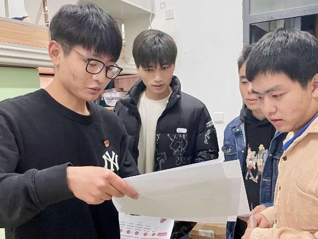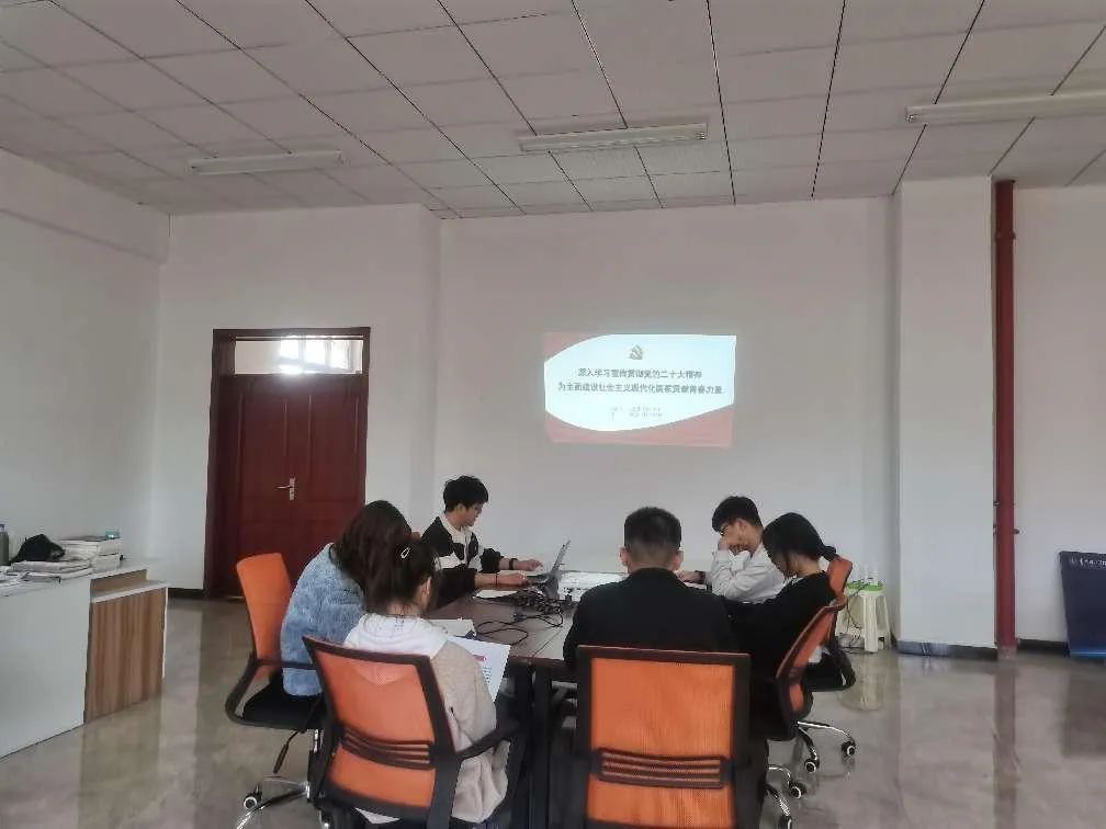学生党员陈阳和学生会同学一起学习党的二十大精神