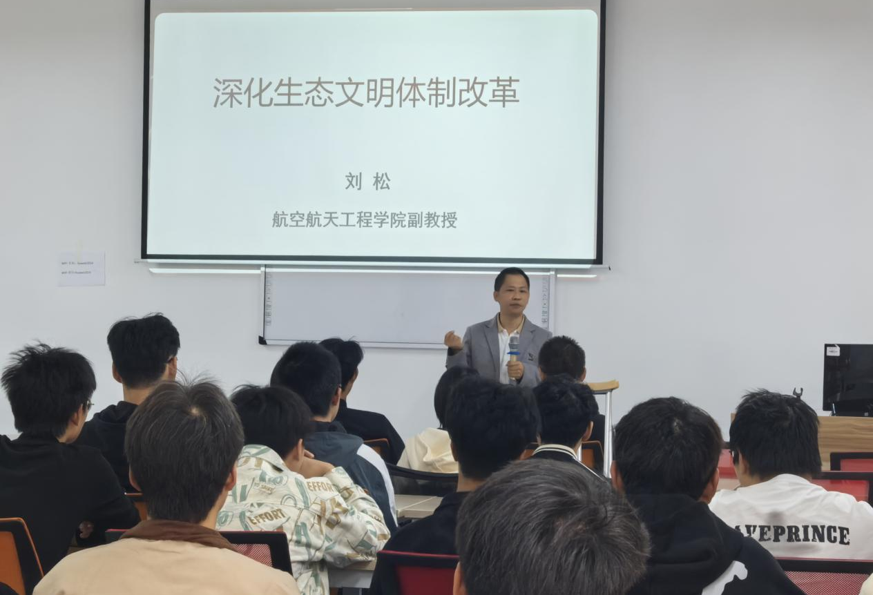 本网讯(大数据学院 文/图 蒋仕豪)按照我校学工部安排,10月31日,航空航天工程学院副教授刘松以“深化生态文明体制改革”为题面向大数据学子宣讲党的二十届三中全会精神。