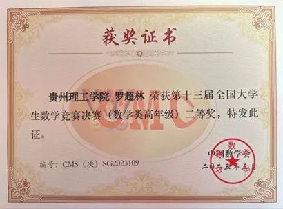 本网讯(文/郝静 图/罗超林)3月24日至26日,第十三届全国大学生数学竞赛决赛在华东师范大学举行。大数据学院2019级数据科学与大数据技术专业学生罗超林在老师的指导帮助下备战一年,通过省赛金奖拿到全国决赛的入场券,最终荣获数学专业高年级组全国二等奖。
