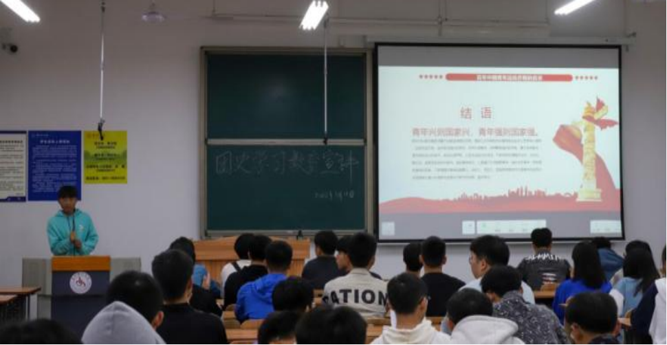 本网讯(文/吴国海 图/郭光彬)2022年5月11日晚,贵州理工学院大学生团史宣讲团成员、大数据学院王诗冀走进建筑与城市规划学院,面向建筑211、 建筑212、 环设211班同学,以“共青团协助共产党掀起革命浪潮”为主题开展团史学习教育宣讲活动。