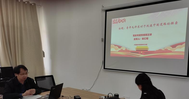 杨仁增副院长主讲了题为《青年毛泽东对于改造中国道路的探索》党史专题党课。党课从创建新民学会、领导湖南驱张运动、创建长沙共产党、出席中共一大四个方面,通过详实的资料,生动讲述了毛泽东同志在这些活动中的重要作用。教师支部党员陈晖同志、学生支部党员石春梅同志分别分享了王若飞、三位共和国元帅朱德、叶剑英、贺龙的入党故事。与会师生党员表示,通过学习党的奋斗历程和伟大成就鼓舞斗志、明确方向;学习党的光荣传统和优良作风坚定信念、凝聚力量;从党的实践创造和历史经验中启迪智慧、砥砺品格,是一堂受益匪浅的党史学习教育课。