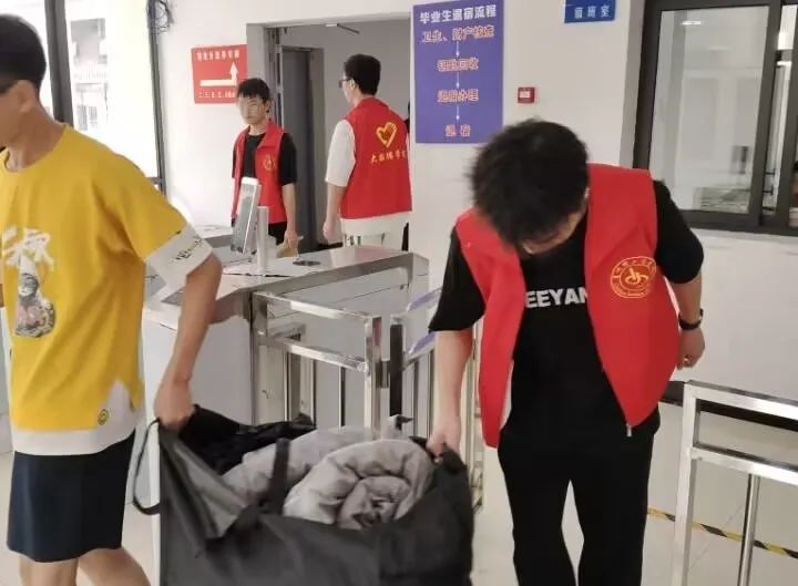 7月1日清晨,学生宿舍搬迁拉开序幕。身穿红色马甲的志愿者们早早来到搬迁现场,争先抢着为同学们搬运行李,一趟、两趟、三趟……“重的我来拿”“同学,我来帮你”……炎炎夏日也挡不住这份热情。一些同学搬出原宿舍后,不忘将寝室打扫干净,甚至上下床的梯步都仔细清理。经过大家的共同努力,宿舍楼焕然一新,墙壁洁白,地面清洁,房间内摆放整齐有序,给蔡家关校区搬过来的同学们提供良好的生活环境。在和谐有序的氛围中,不仅顺利完成了大数据学院学生宿舍搬迁,而且帮助从蔡家关校区搬入贵安校区的其他学院同学完成搬迁。