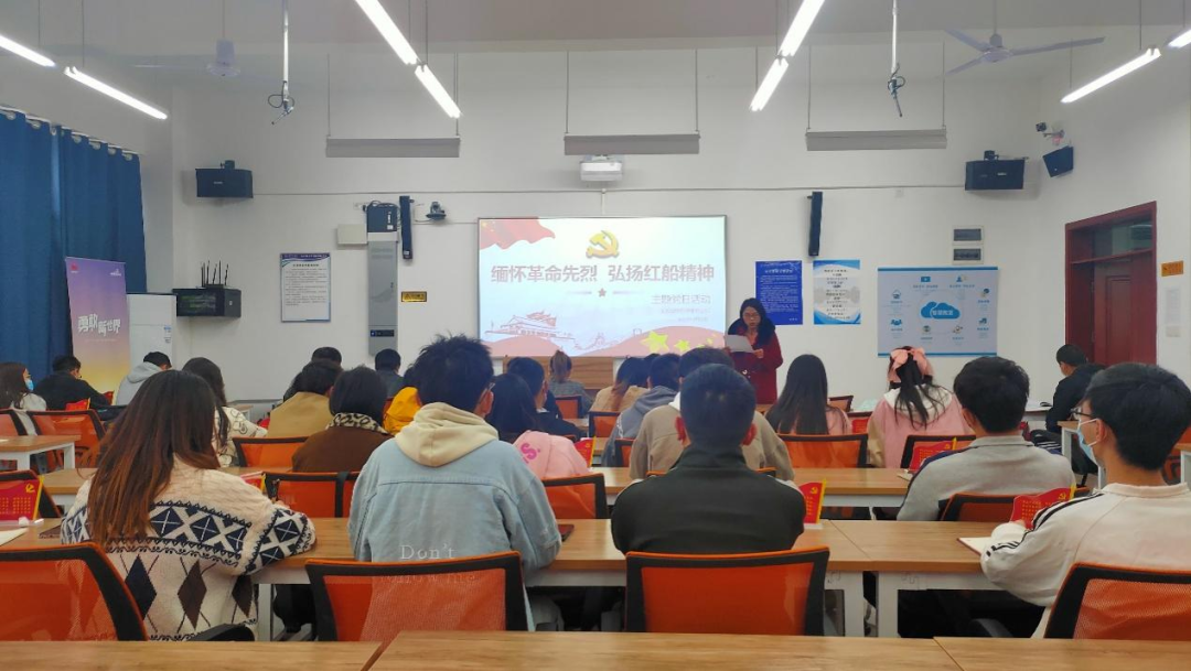本网讯(图/文 杨熙雯)2022年4月15日,大数据学院学生党支部在G3302教室线上线下同步开展“缅怀革命先烈 弘扬红船精神”主题党日活动。支部书记石春梅主持,支部全体党员参加。