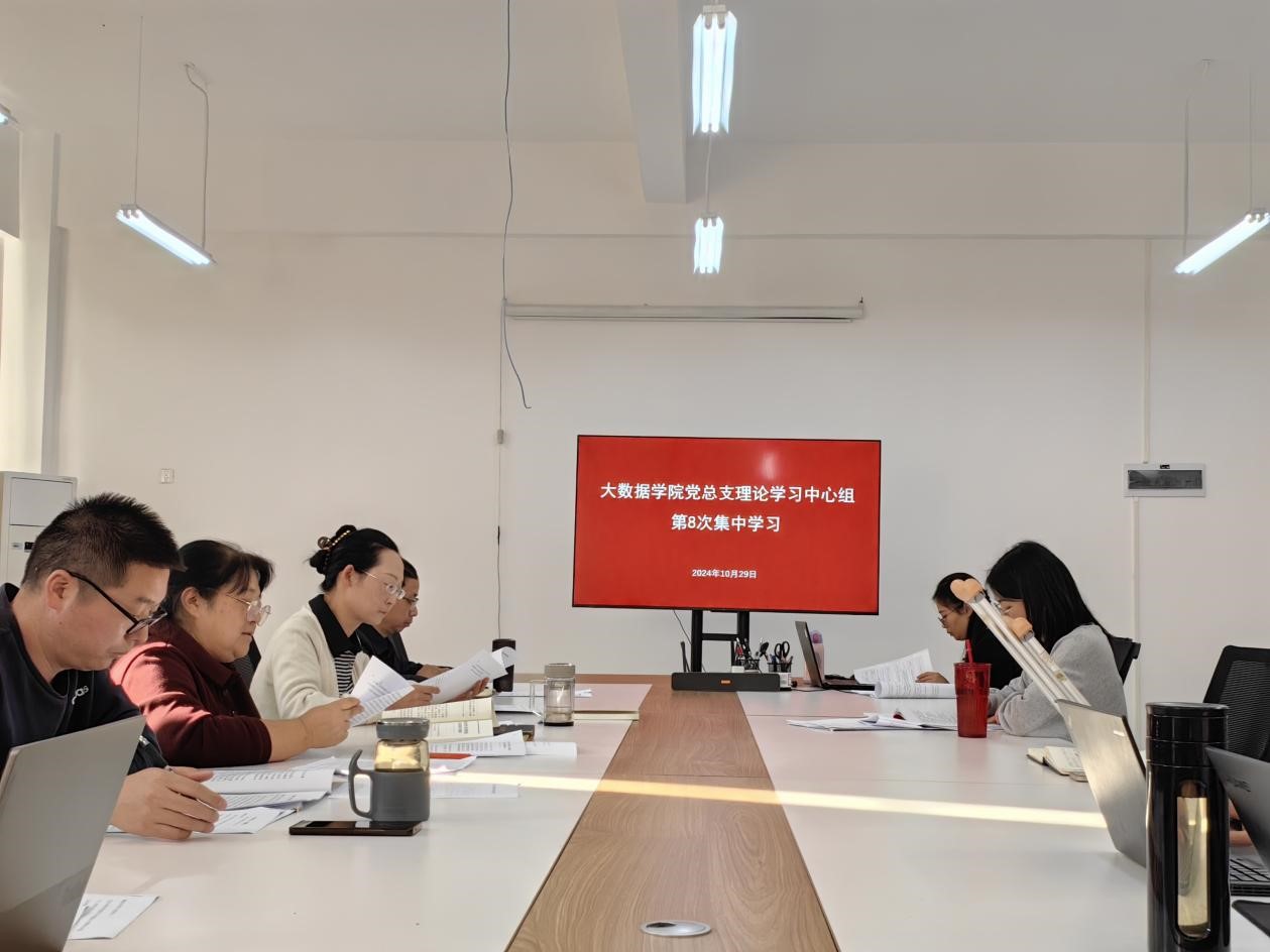 本网讯(大数据学院 文/图 袁梓熙)10月29日,大数据学院党总支理论学习中心组在睿知楼510会议室以“学习贯彻全国教育大会精神,办好人民满意的教育”为主题开展集中学习。党总支书记张艳主持,党总支委员、师生党支部书记、各科室、教研室、信息实验中心负责人参加。