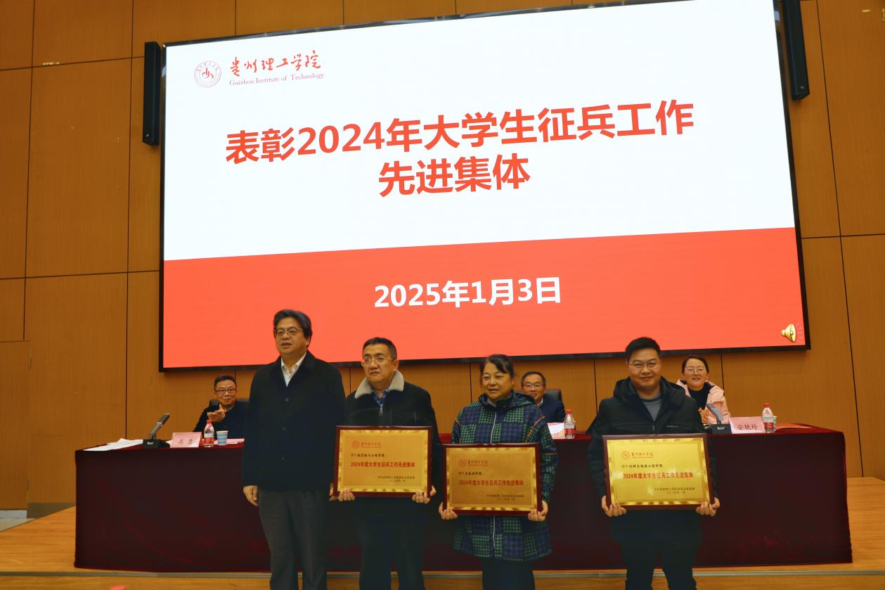 本网讯(大数据学院 文/陈盼 图/彭翌飞)2025年1月3日,在我校毕业生就业暨征兵工作会上,大数据学院荣获贵州理工学院2024年度大学生征兵工作先进集体,负责征兵工作的辅导员陈盼在会上做经验分享。