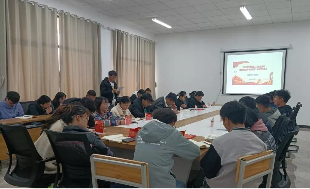 游链、冯远澳、杨瑞豪、赵洪夷四位党员同志进行交流发言。大家纷纷表示要活学活用会议精神,自觉学习党的创新理论,不断提升专业知识水平,肩负历史使命,坚定前进信心,立大志、明大德、成大才、担大任,努力成为堪当民族复兴重任的时代新人。