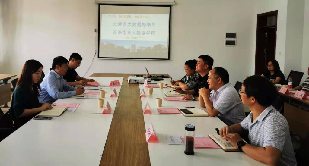 本网讯(大数据学院 文/秦媛媛 图/黄华脆 秦媛媛)8月18日下午,贵州省大数据发展管理局党组成员、副局长李刚一行到我院就大数据人才培养情况进行实地调研。校长助理莫立坡出席并主持座谈会,学院领导班子成员、各科室负责人、合作企业负责人及教师代表参加会议。