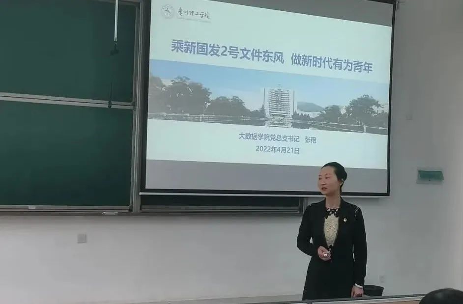 本网讯(图/文 陈盼)2022年4月21日上午,大数据学院党总支书记张艳深入计算机211、212班,以《乘新国发2号文件东风 做新时代有为青年》为题,给同学们上了一堂振奋人心的思政课。
