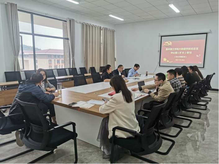 本网讯(文/石春梅 图/秦媛媛)2021年5月28日,大数据学院党总支中心组在学院会议室开展党史学习教育第二次集中学习,党总支委员、师生党支部委员、各科室负责人、信息实验中心主任参加学习,党总支副书记武斌主持会议。