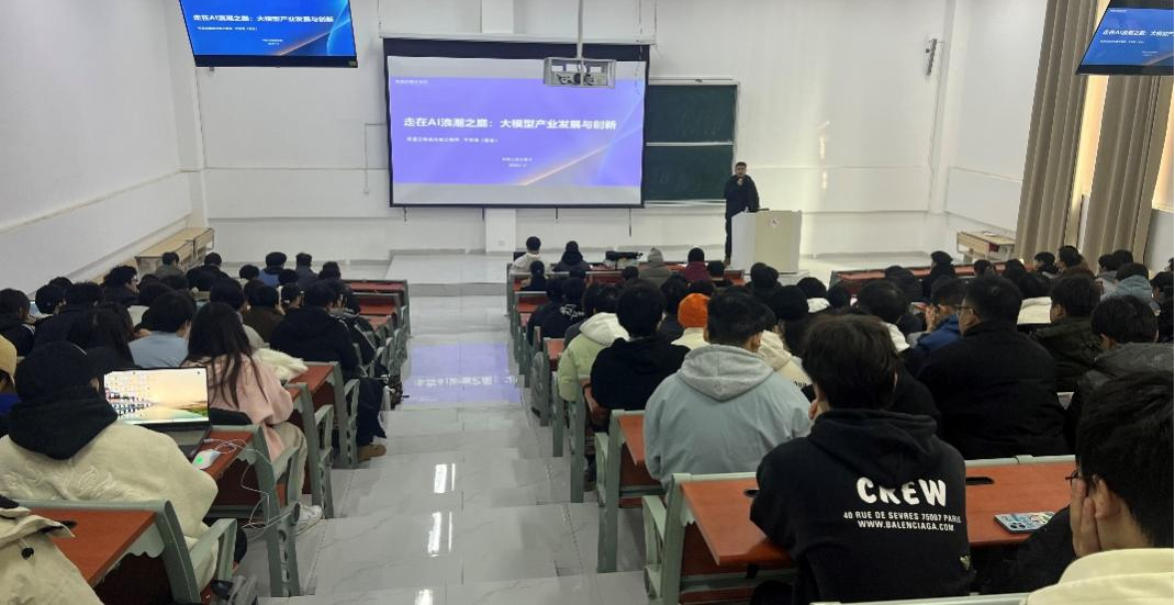 本网讯(大数据学院 文/图 张婧慧)为促进同学们深入了解大模型在不同领域的应用和发展,2024年12月16日至18日,阿里云智能集团解决方案工程师王志恒到大数据学院开展“走在AI浪潮之巅:大模型产业发展与创新”前沿技术与应用专业讲座。2022级、2023级数据科学与大数据技术、网络工程专业400余名学生参加。