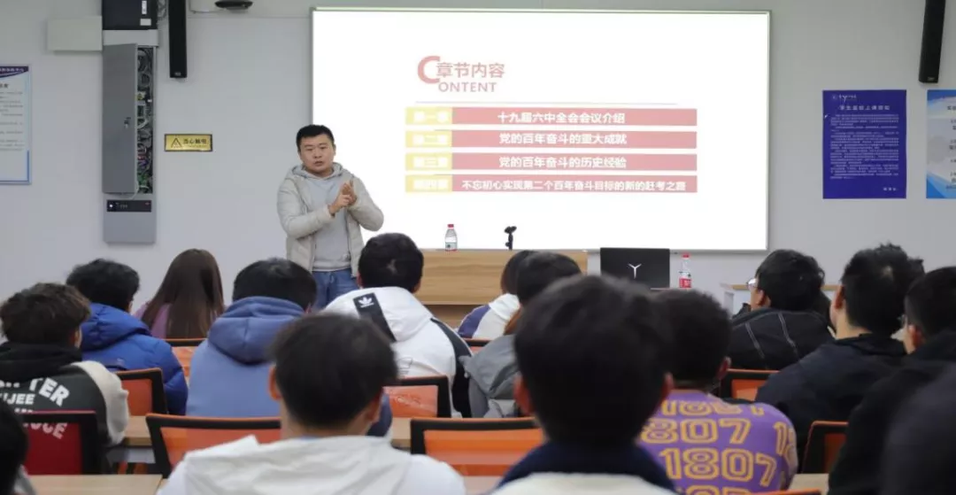 本网讯(大数据学院 文/王诗冀 图/郭云龙)中国共产党第十九届中央委员会第六次全体会议于2021年11月8日至11日在北京胜利召开,会议审议通过了《中共中央关于党的百年奋斗重大成就和历史经验的决议》。11月15日晚,大数据学院团总支副书记陈盼老师带领我院团总支、学生会全体成员在贵安校区G3302教室深入学习十九届六中全会精神。