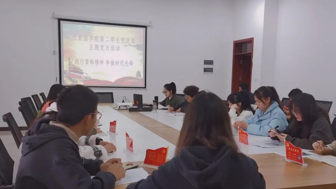 本网讯(文/许瑞 图/赵金美)2023年3月31日,大数据学院第二学生党支部在贵安校区G3522会议室开展“践行雷锋精神 争做时代先锋”主题党日活动。支部全体党员参加,支部书记孙秋韵主持会议。