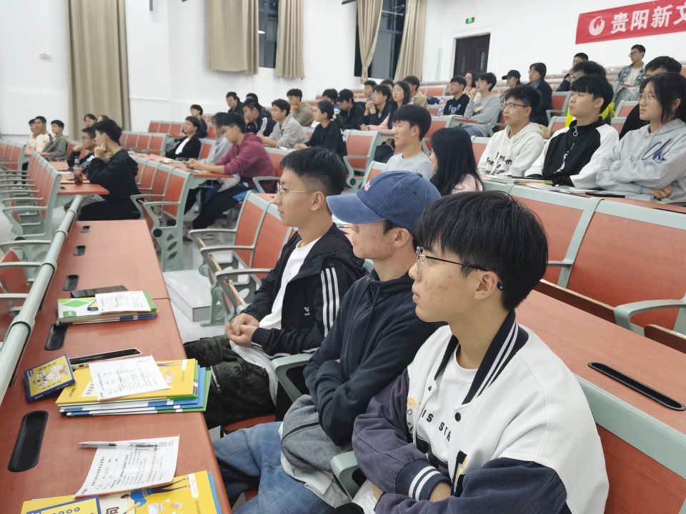 本次讲座由贵阳新文道大学城校区执行校长戴玉作老师主讲。戴玉作从以往的考研数据切入,分析名校报名增长停滞、“逆向考研”以及“双非”高校成为报考热门等现实情况,并为同学们详细讲解考研全流程。