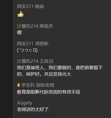 与会新生在线上积极互动,留言表示“我们是接班人,要不负韶华,努力学好专业,做社会主义现代化强国的建设者,而不是旁观者。”