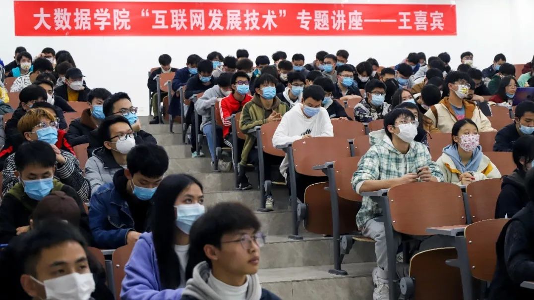 本网讯(图/杨丹妮 文/王灿)11月17日晚,大数据学院王喜宾博士在贵安校区G1110教室开展主题为“互联网发展技术”的专题讲座。一百余名大数据学子到场聆听。