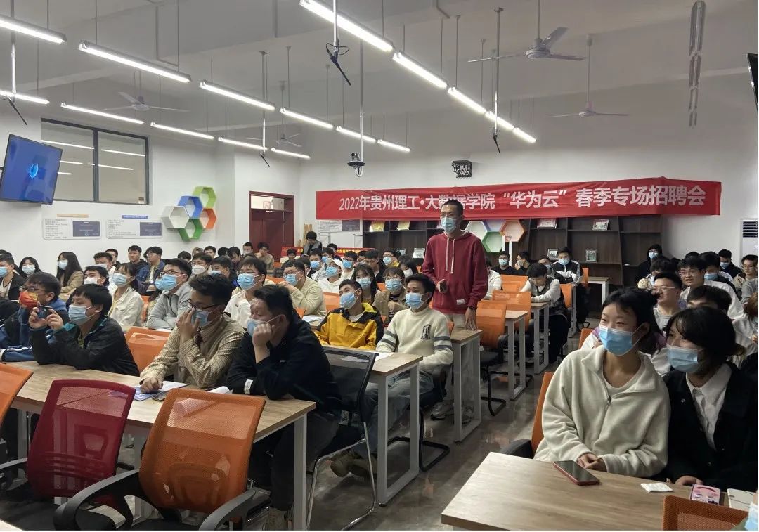 本次宣讲会是华为云今年在贵州高校的首场专场宣讲会。郭庆海副总裁在会上介绍了华为技术有限公司的概况、企业使命、价值观和对人才的要求等。本次招聘主要为华为贵安七星湖基地储备人才,提供的岗位有云技术服务专员、SRE专员、数据中心运营运维等。同学们热情高涨,踊跃提问互动,现场气氛热烈。张艳书记鼓励同学们抓住机会,积极投递简历,敢于挑战自己,实现更好发展。