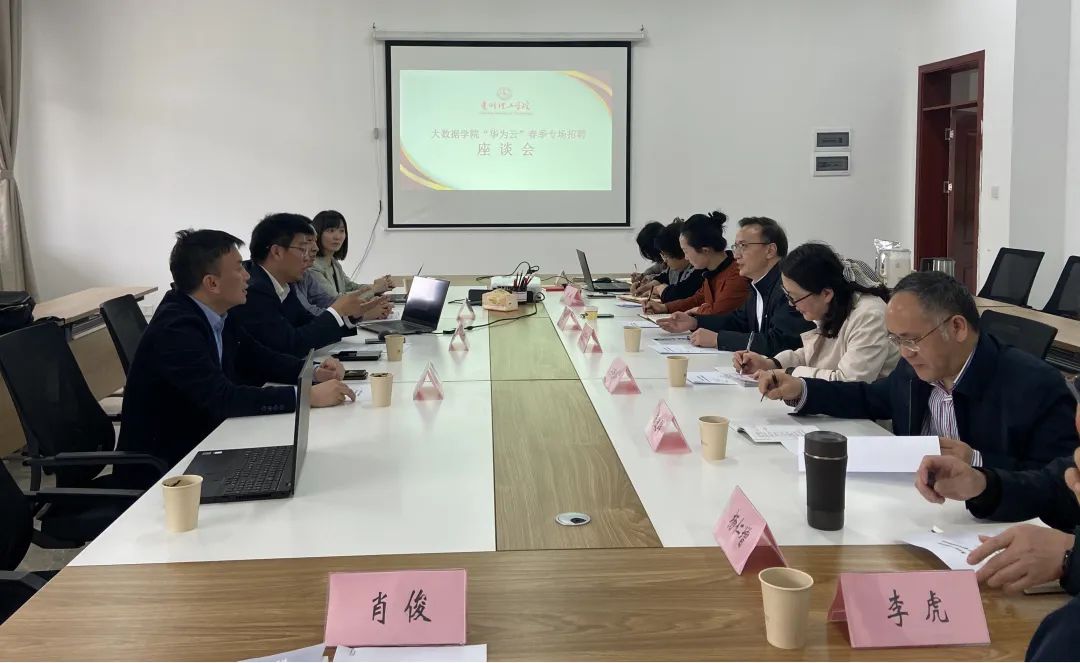本网讯(图/文 肖俊)2022年3月16日下午,大数据学院在贵安校区举办“华为云”理工专场招聘宣讲会。华为云中国区云业务部副总裁郭庆海、华为云计算贵州云业务部长吕河、华为云计算贵州云业务部HR张云峰等参加宣讲,并与贵州理工学院副校长张开智,教务处处长安艳玲、学院班子成员张艳、肖迎群、武斌、杨仁增等座谈交流。
