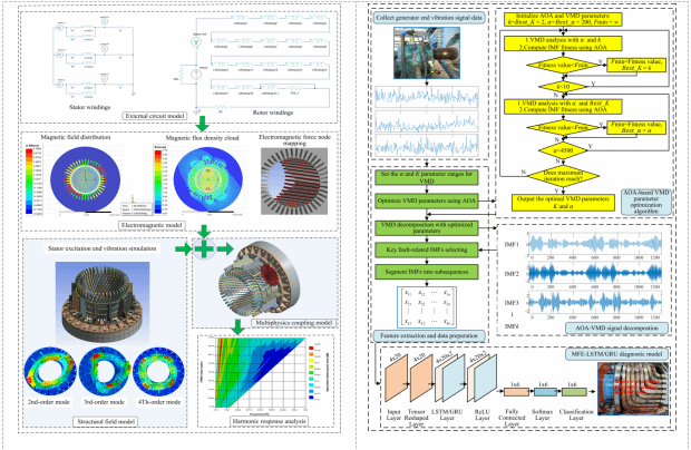 该研究揭示了发电机转子绕组匝间短路故障的电磁—机械耦合振动机理,验证了多模态数据融合与深度神经网络在能源装备健康监测中的工程可行性,相关技术已具备实际部署条件,可支撑新型电力系统安全稳定运行。