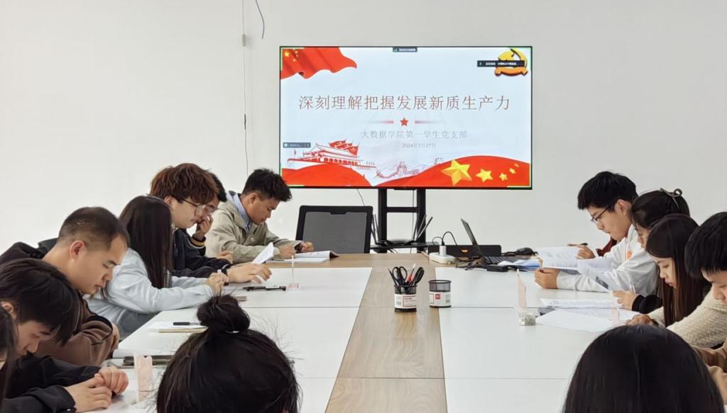 本讯网(大数据学院 文/赵晴 图/郭光彬)3月27日,大数据学院第一学生党支部在睿知楼510会议室开展“深刻理解把握发展新质生产力”主题党日活动。支部书记石春梅主持,支部全体党员参加。