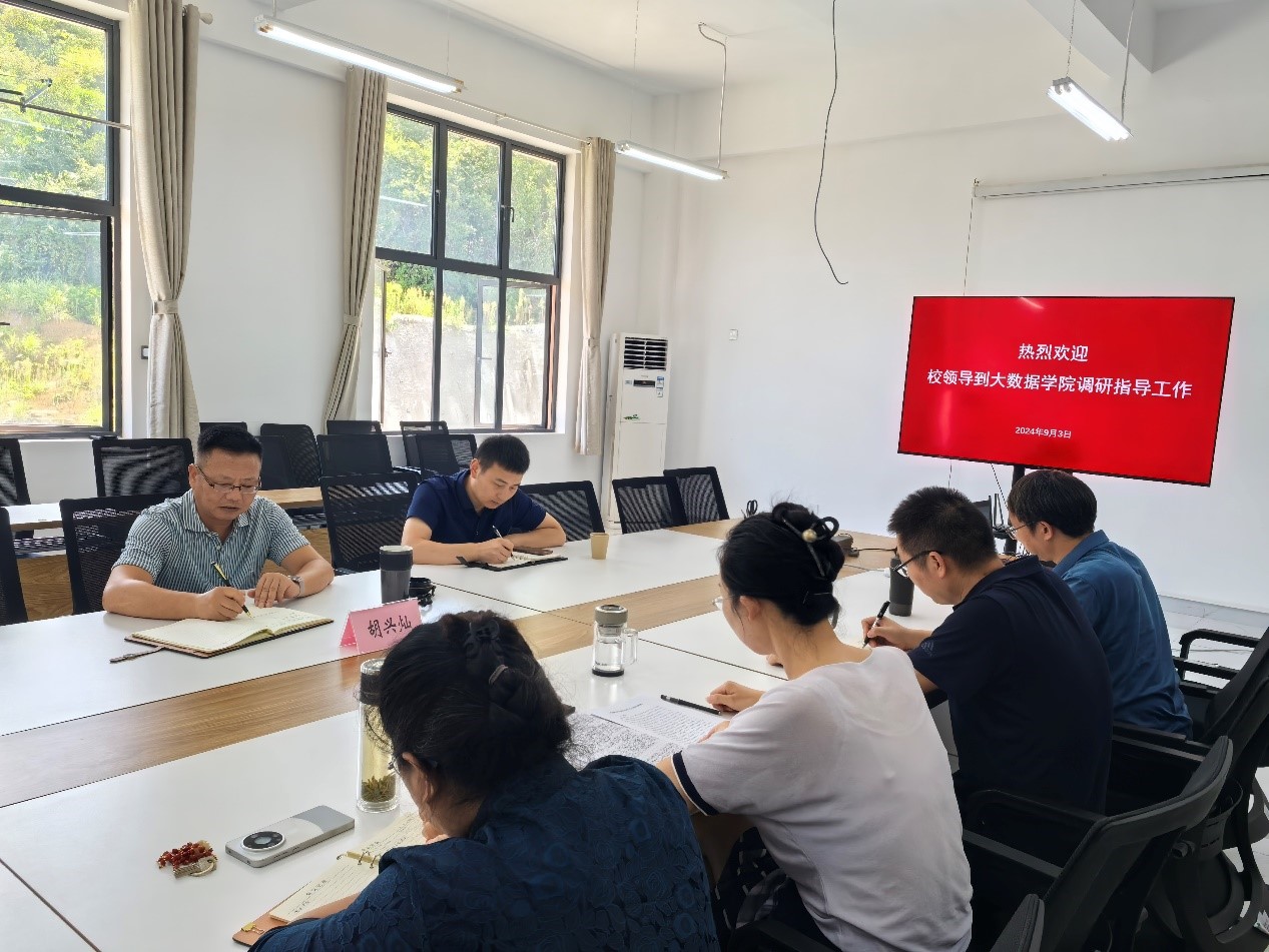 本网讯(大数据学院 文/潘红锐 图/秦媛媛)9月3日下午,校党委副书记胡兴灿到大数据学院调研指导工作,校党委委员、宣传部长李朋陪同调研。大数据学院党政领导班子及科室负责人参加调研座谈会。