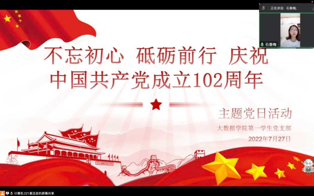 本网讯(文/赵晴 徐丽菊)近日,大数据学院第一学生党支部通过腾讯会议开展主题教育第三次读书分享会和7月主题党日活动,支部书记石春梅主持,支部全体党员参加。